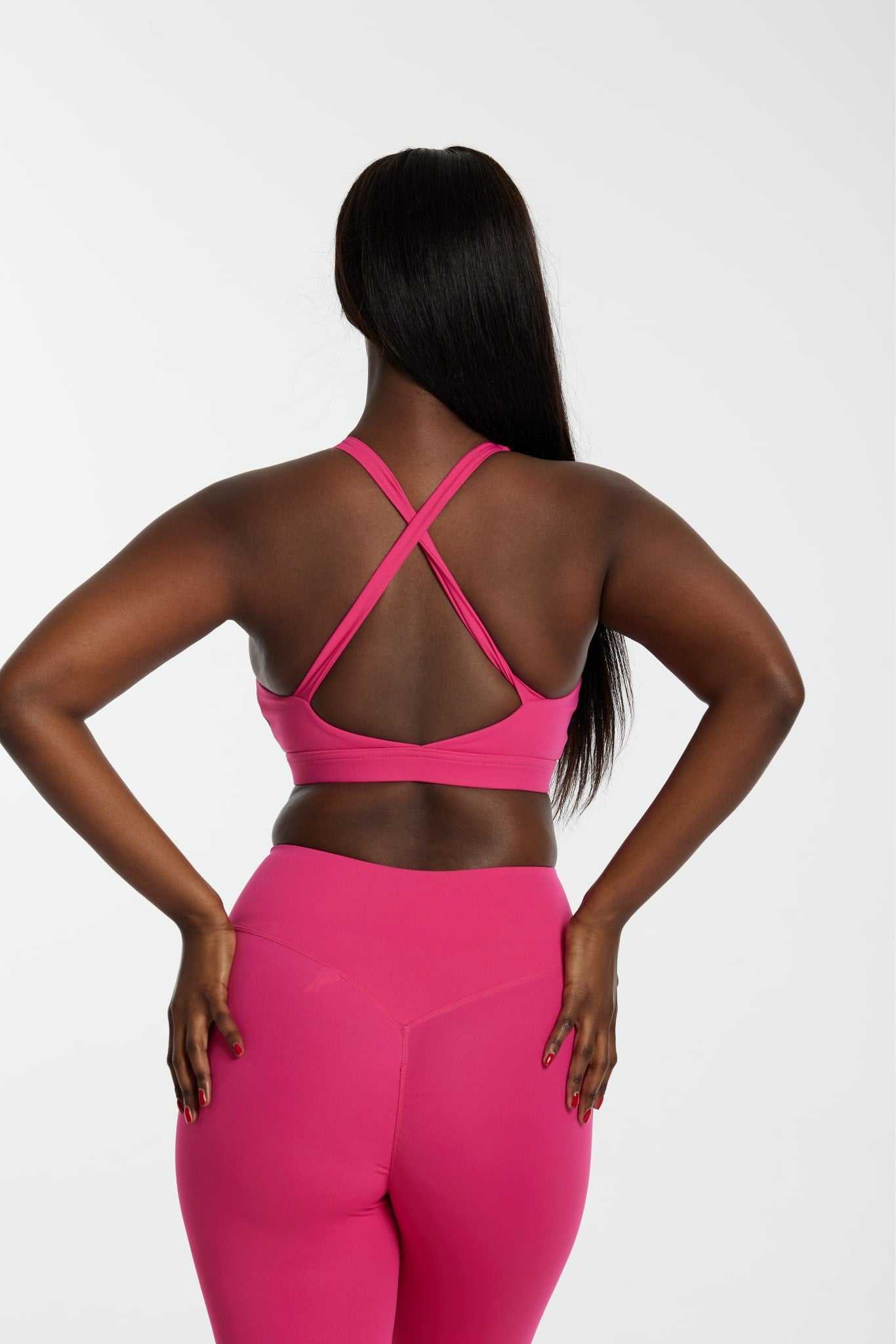 Radiant Rose Pink Sport BraFlaunt your style in our Radiant Rose Pink Sport Bra, a vibrant and chic addition to your lingerie collection. Crafted from a stretchy nylon-polyester-spandex blend, Radiant Rose Pink Sport Bra hugs your shape in the vivid color of rose pink. The quick-drying, sustainable fabric is designed for all-day comfort. Show off the Radiant Rose Pink Sport Bra, perfect for adding a pop of color to your outfits. The spandex in the fabric provides the perfect stretch for a body-loving fit. Whether paired with jeans, skirts, shorts, or more, this bralette adds a touch of flair to any ensemble. The Radiant Rose Pink Sport Bra features lightly lined cups and seamless construction, preventing bulges and lines under clothes. Care for this vibrant piece is easy with hand wash cold, hang dry in shade, and avoiding bleach or ironing. Available in one size that fits most, with size references for both a dark skin model (5’10”, 140 lbs, wearing a Medium) and a blonde model (5’9”, 120 lbs, wearing a Small). Flatter your shape in this Radiant Rose Pink Sport Bra—ideal for layering or wearing solo with your favorite outfits.