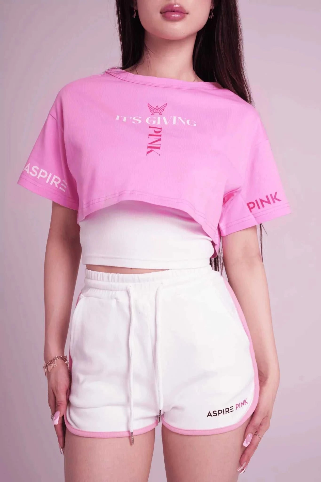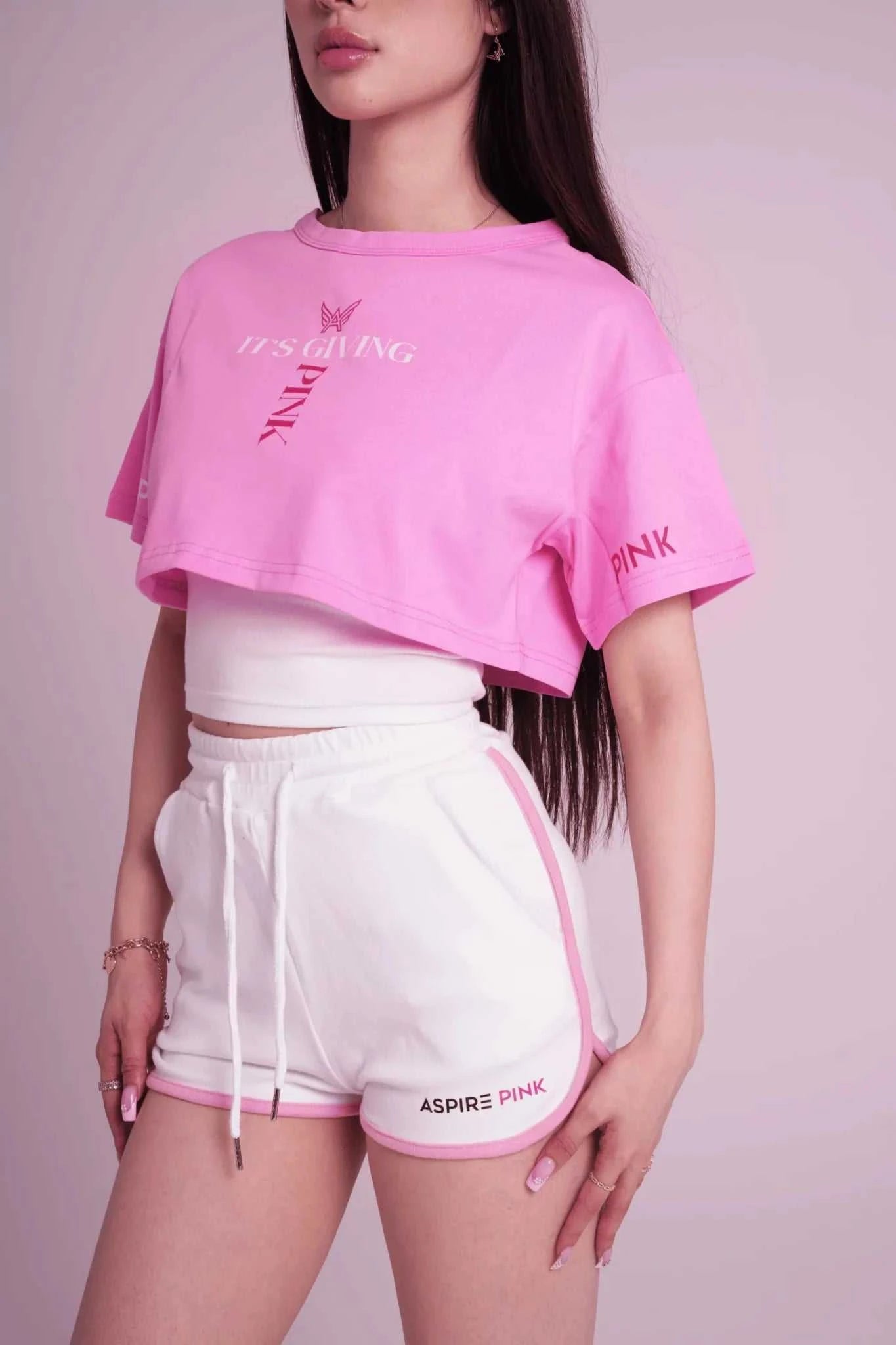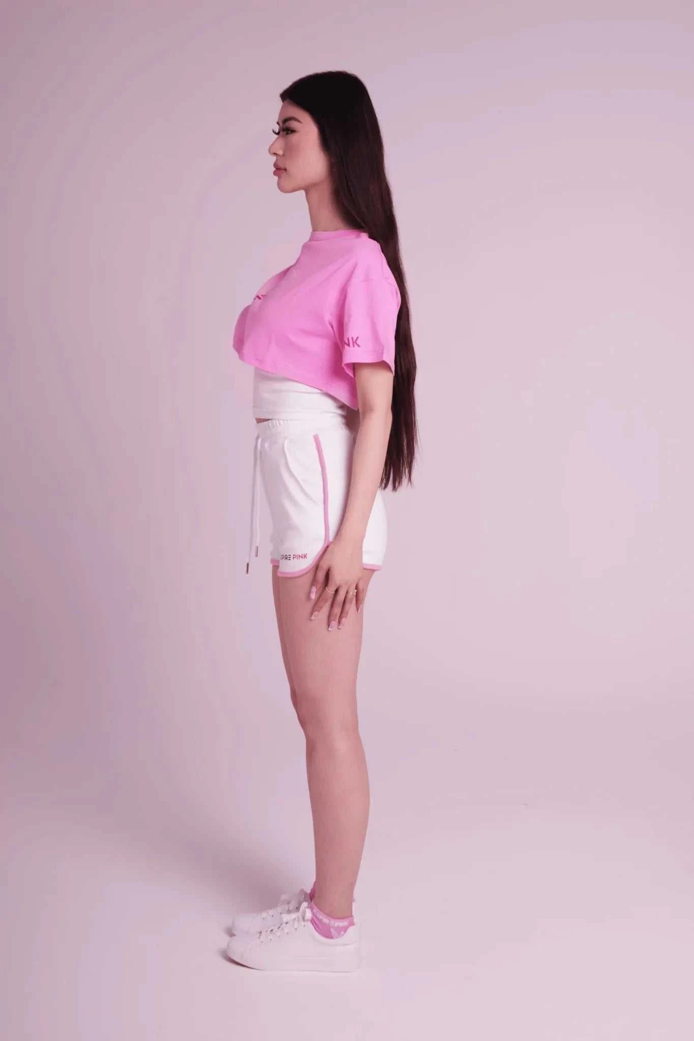 Material: 100% premium cotton for softness and breathability. Color: Luxe Blush, a sophisticated and elegant shade of pink. Design: Cropped T-shirt with a tailored fit that accentuates your silhouette. Fit: Flattering and comfortable, perfect for a variety of activities and occasions. Versatility: Pairs beautifully with jeans, high-waisted shorts, skirts, and more.