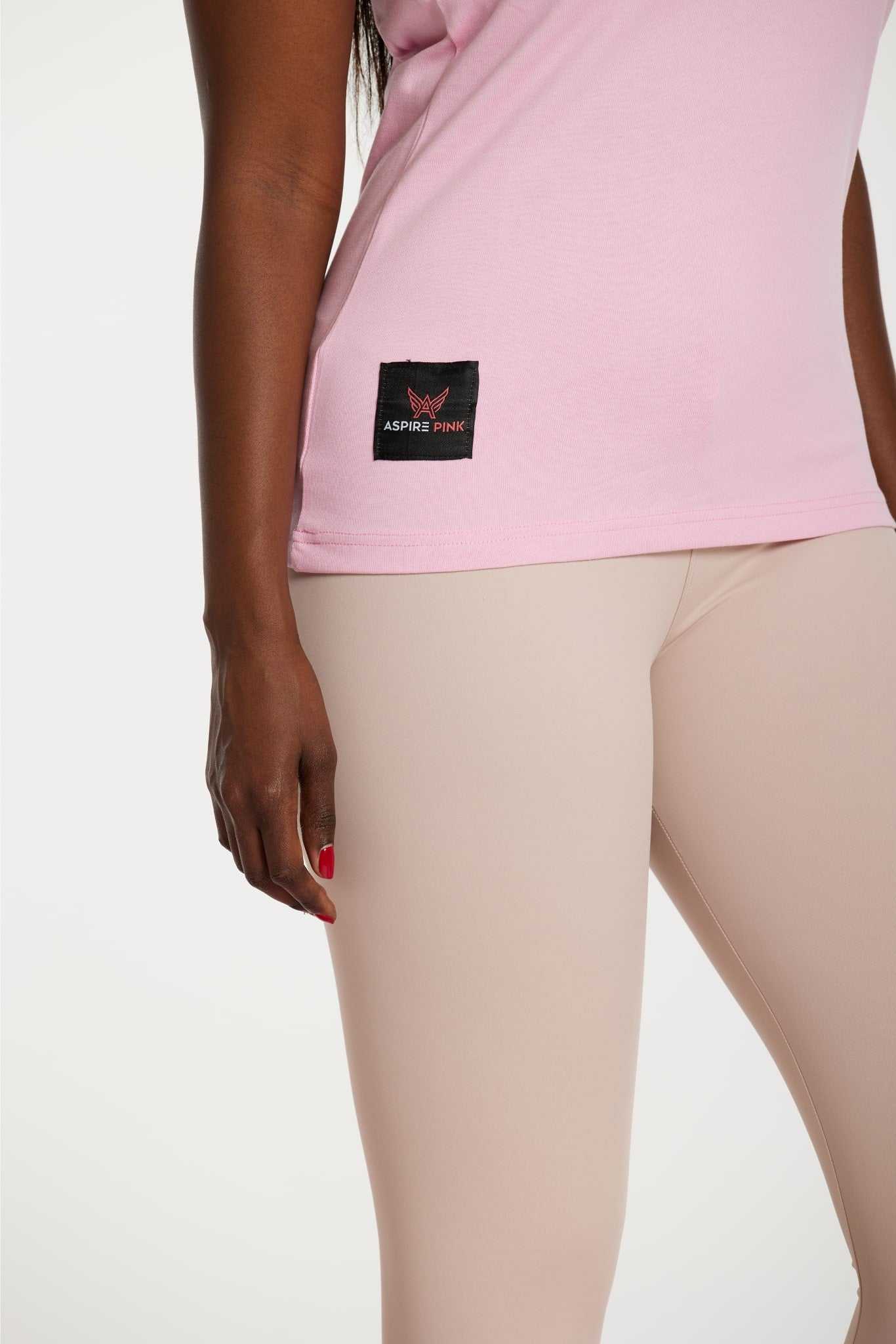 100% sustainable cotton Soft, breathable fabric Stylish black woven patch Vibrant peony pink color Easy hand wash care Durable, quality construction