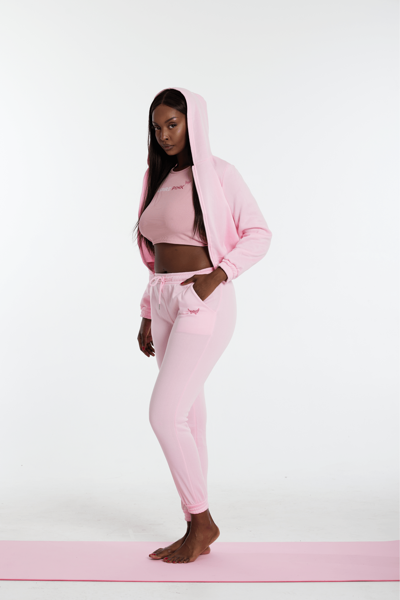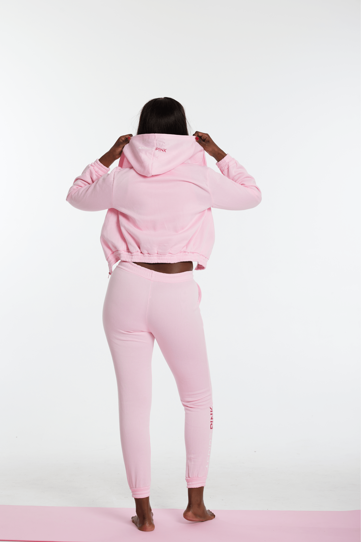 Solid peony pink color Sustainable polyester/cotton blend Soft, stretchy fabric Elastic waist for flattering fit Easy hand wash care